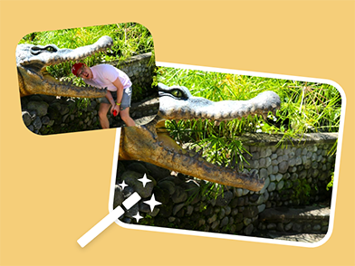 A: Explore inPixio's various customization tools to add excitement and creativity to your projects. Enhance your memes by adding stickers, emojis, or personalized illustrations. Looking to enhance your cat's grumpy expression with a dramatic lens flare? Completed. Are you in the mood for some creative expression? Create a thought bubble over your boss's head. There are limitless possibilities!