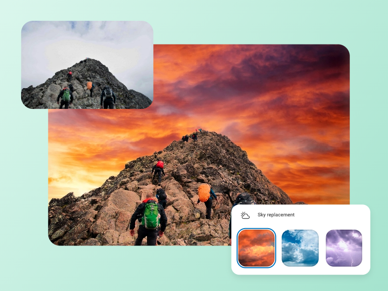 Migliora le tue foto con i nostri strumenti basati sull'intelligenza artificiale. Rimuovi gli oggetti indesiderati, sostituisci il cielo, migliora la nitidezza, crea splendidi montaggi fotografici e applica filtri per raggiungere la perfezione. Garantiamo regolazioni precise per le tue foto ogni volta che lo desideri!